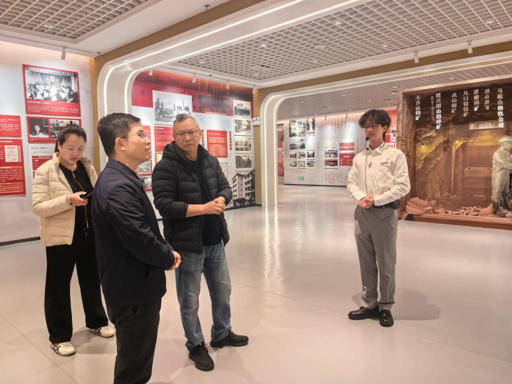 在江西理工大学校史馆,汪航副校长详细介绍了江西理工大学发展历程以及在服务我国有色金属工业发展所做的重要贡献。