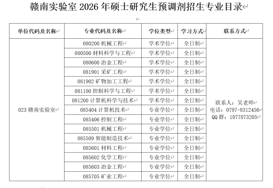 根据2026年硕士研究生招生考试初试国家分数线及赣南实验室一志愿考生上线情况,相关专业拟接收部分调剂考生,实际调剂学科专业及人数以调剂系统公布为准。
